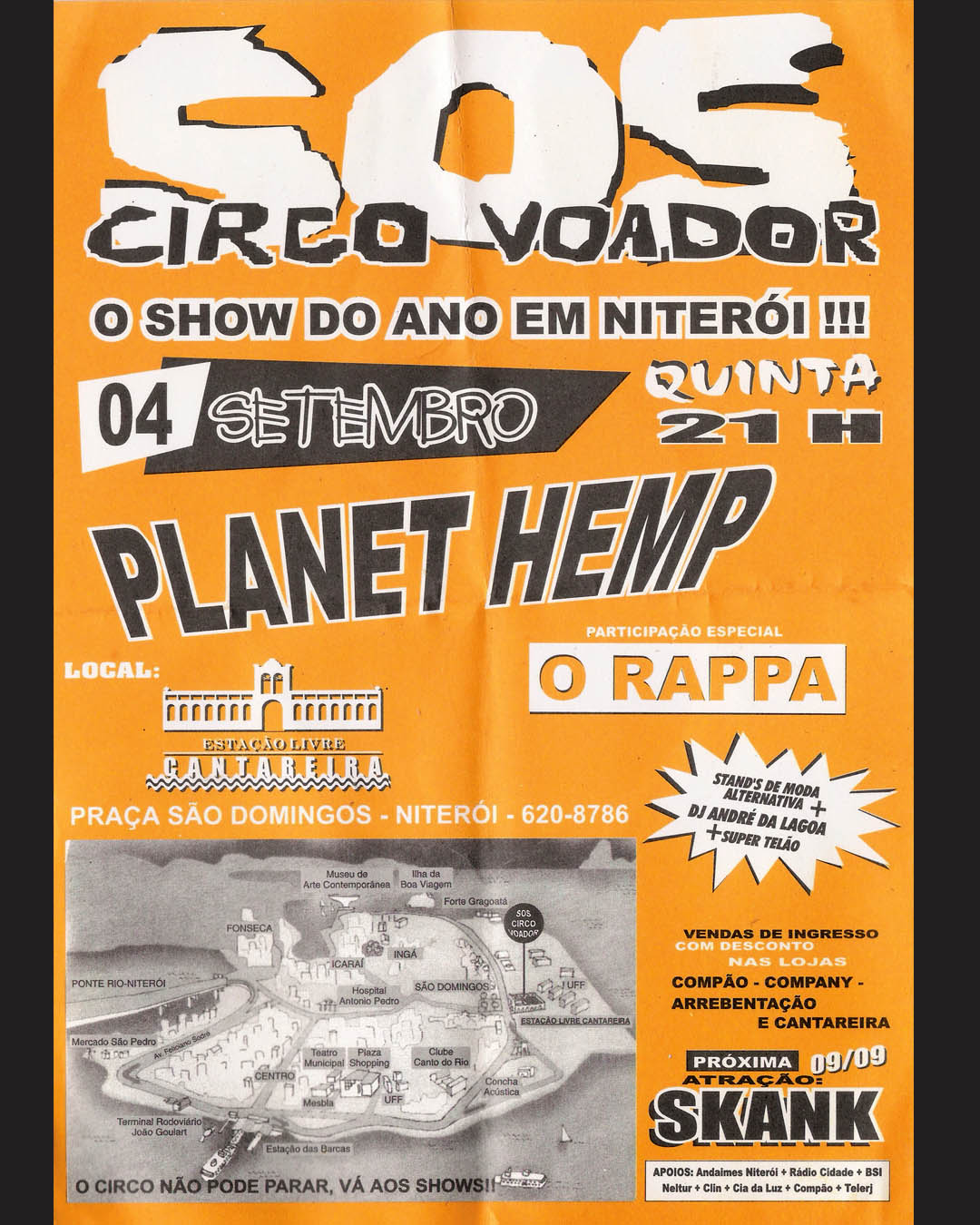 Ele relembra ainda um episódio emblemático de 1997, quando o Planet Hemp se apresentou em um evento chamado S.O.S Circo Voador, realizado na Estação Cantareira, no Centro de Niterói: