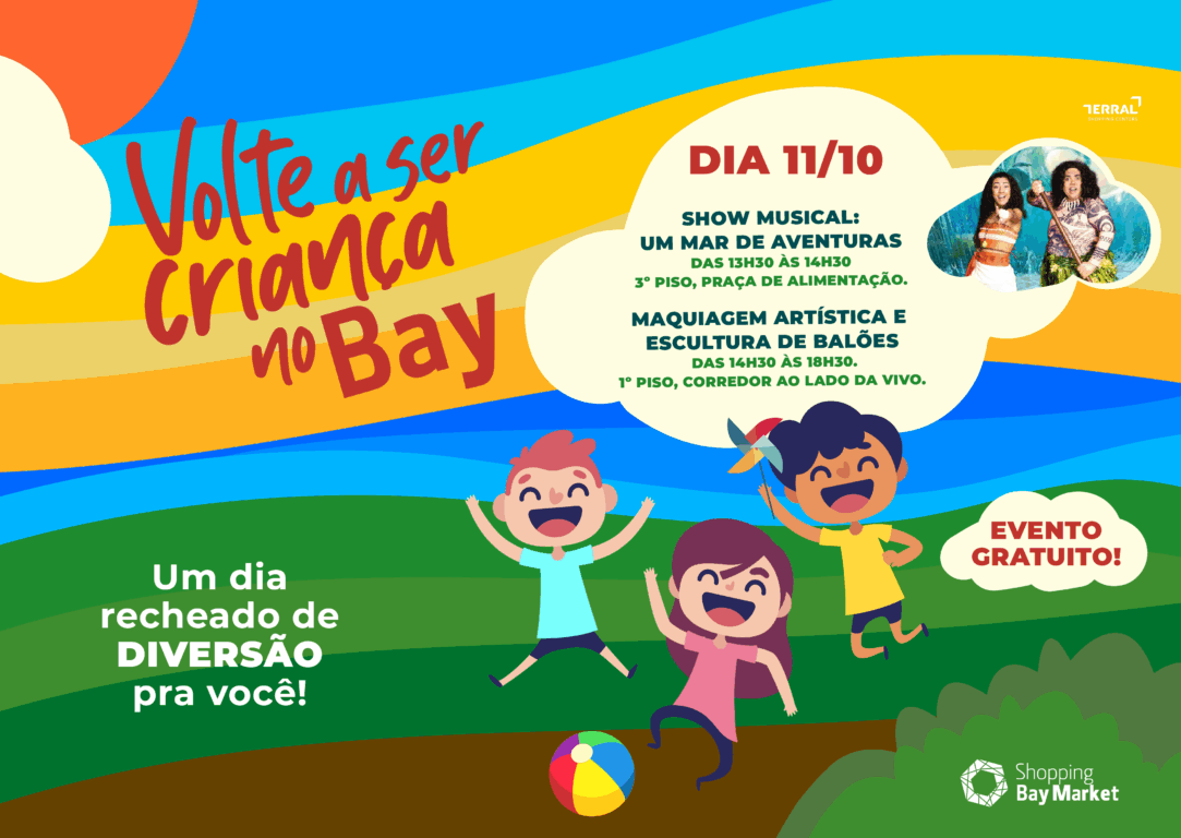 O Shopping Bay Market, em Niterói, preparou uma tarde repleta de música, cores e alegria para celebrar o Dia das Crianças com toda a família. O evento acontece no sábado, 11 de outubro, e promete encantar o público com atividades gratuitas, atrações lúdicas e uma ação solidária especial.