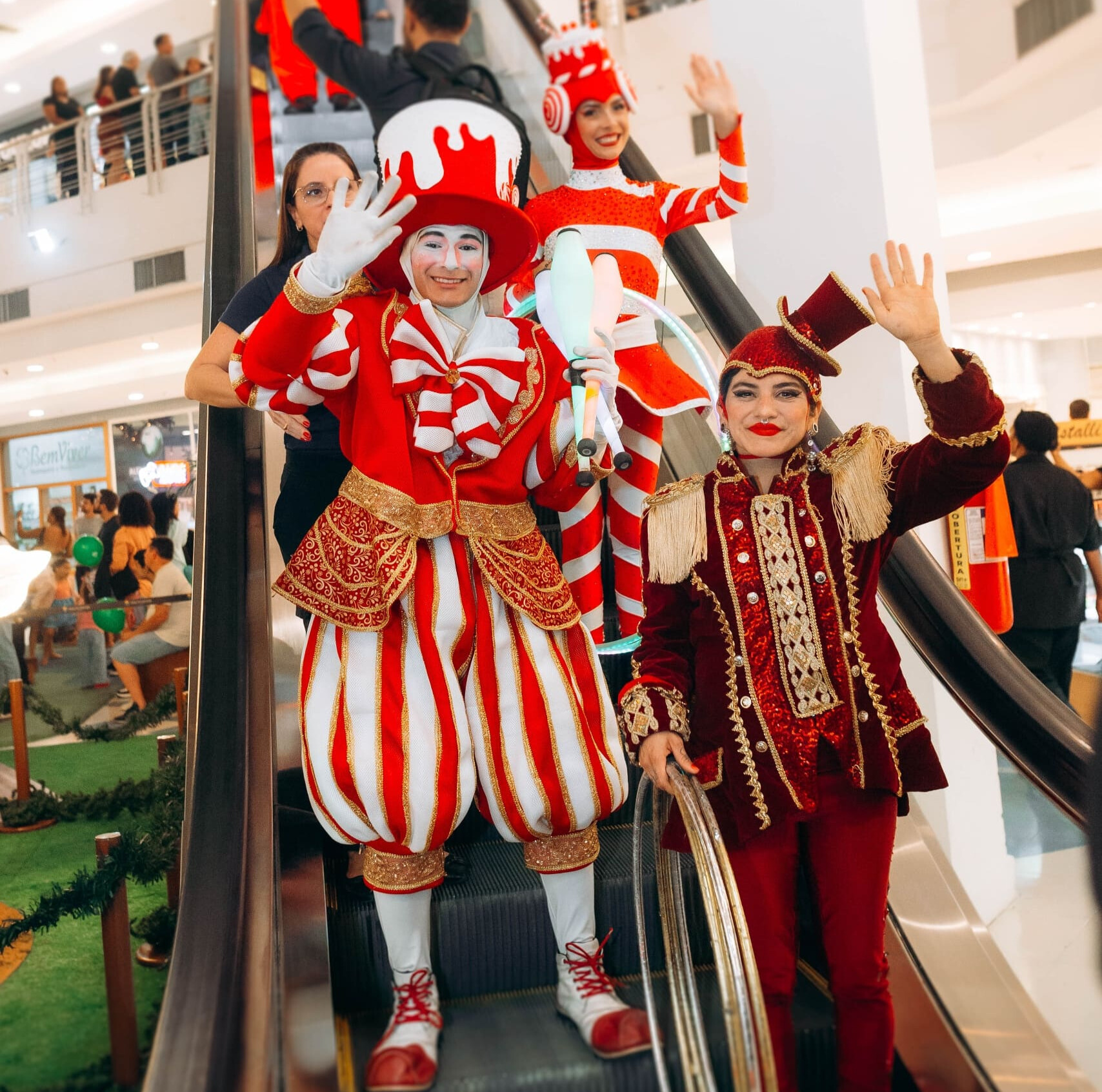 • Após as apresentações, os artistas circulam pelo mall para interagir com o público, garantindo momentos inesquecíveis para crianças e adultos.
