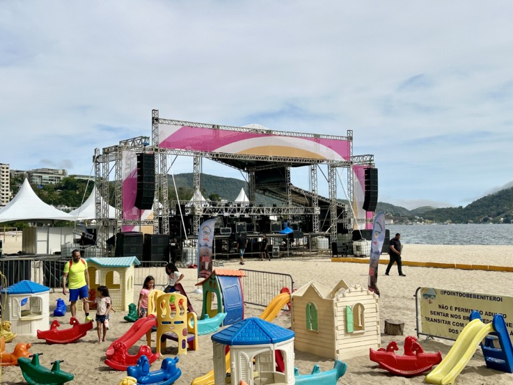 Um palco montado na Praia de Icaraí, em frente à Rua Otávio Carneiro, está chamando a atenção de quem passa pela orla de Niterói. A estrutura faz parte das comemorações do Dia das Crianças, com uma programação repleta de oficinas criativas e shows infantis gratuitos neste domingo (12).