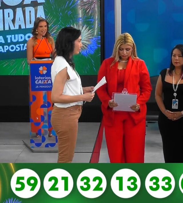 A transmissão ao vivo começou pouco depois das 10h, com sorteios de outras seis loterias. As dezenas da Mega da Virada começaram a ser extraídas às 10h55, encerrando a programação especial.