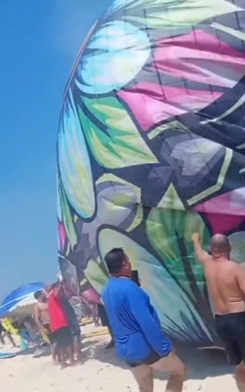 Banhistas resgataram um balão de cerca de 8 metros que caiu na Praia de Itaipu, na Região Oceânica de Niterói, neste domingo (28), como mostram imagens que circularam nas redes sociais ao longo da tarde. O objeto teria caído na areia e sido retirado por pessoas que frequentavam a praia.