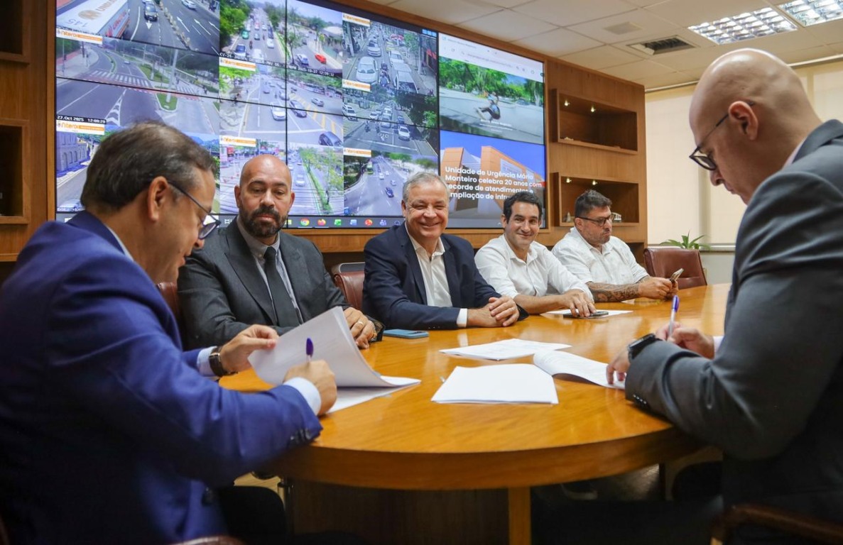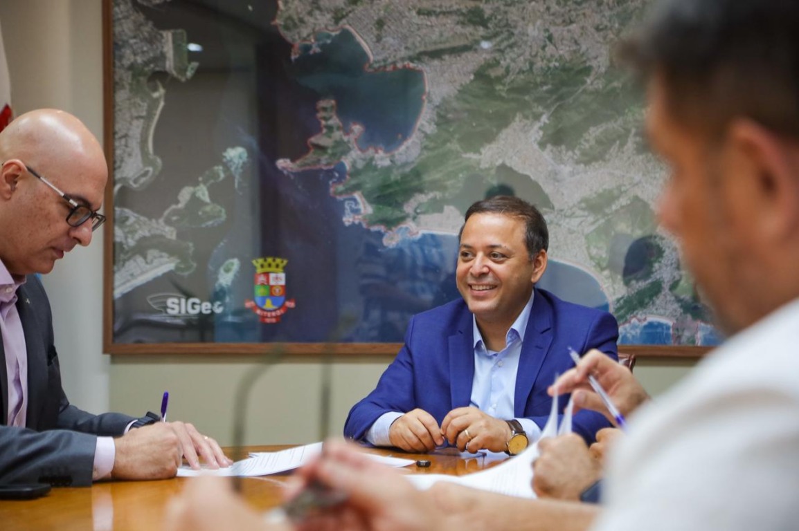 Nesta segunda-feira (27), o prefeito Rodrigo Neves recebeu o secretário da Polícia Civil do RJ, delegado Felipe Curi, para assinar o acordo de cooperação que viabiliza a Cidade da Polícia em Niterói. A parceria prevê investimento municipal de R$ 4 milhões e entrega prevista para janeiro de 2026.