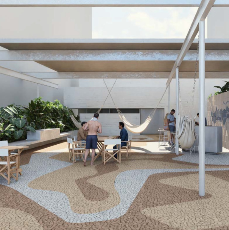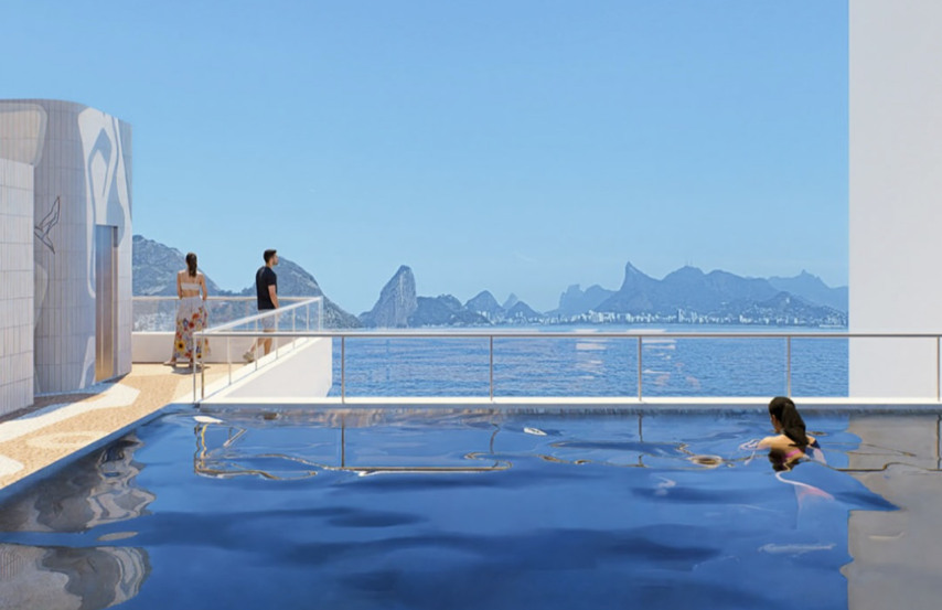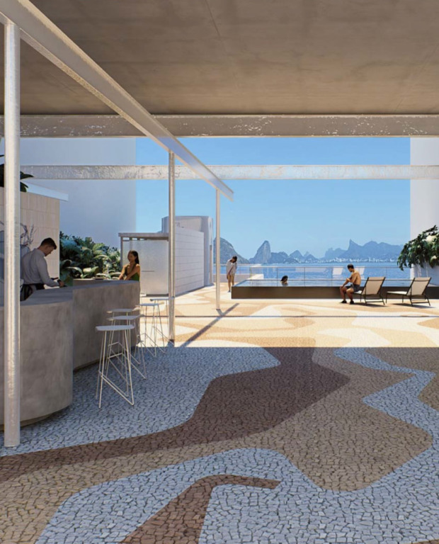 Com um design moderno e elementos inspirados nas pedras portuguesas da orla de Icaraí, o novo espaço contará com áreas gourmet, jardim e piscina com vista para a Baía de Guanabara, além de espaços de convivência e descanso.