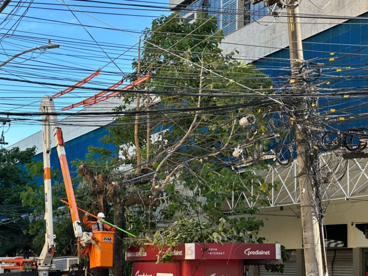 Poda ocorre em área com emaranhado de fios e rede elétrica