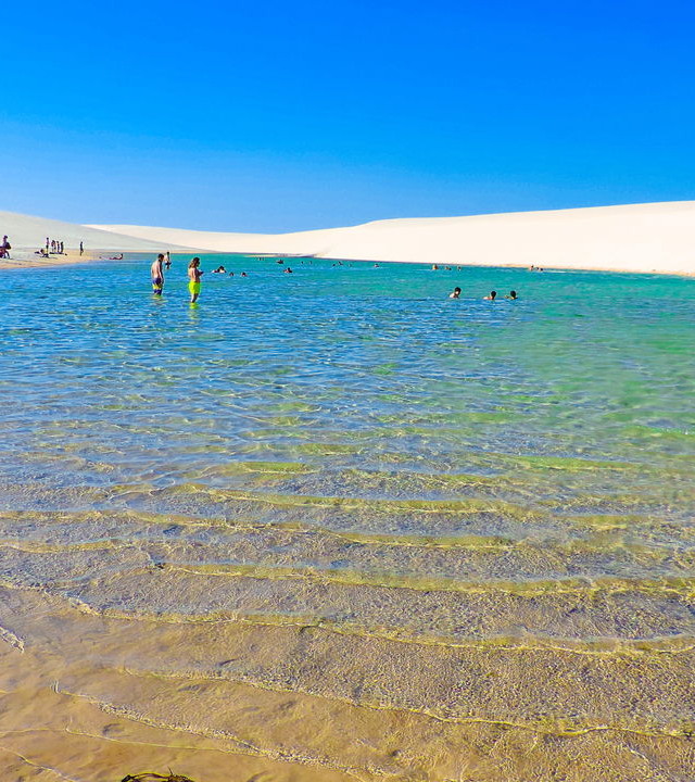 O contraste entre o solo arenoso e as águas cristalinas cria visuais raros na natureza, com colorações que variam entre turquesa, azul e verde. A sensação para quem explora o parque é de estar em um oásis de tranquilidade.