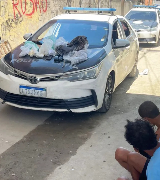 Durante a ação, agentes da Delegacia de Maricá se posicionaram em pontos estratégicos da comunidade. Em um dos acessos, um homem de 38 anos foi abordado enquanto utilizava um rádio comunicador para monitorar a movimentação policial.