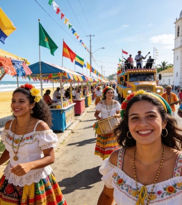 Aproveite os desfiles nas ruas principais para celebrar a cultura local.