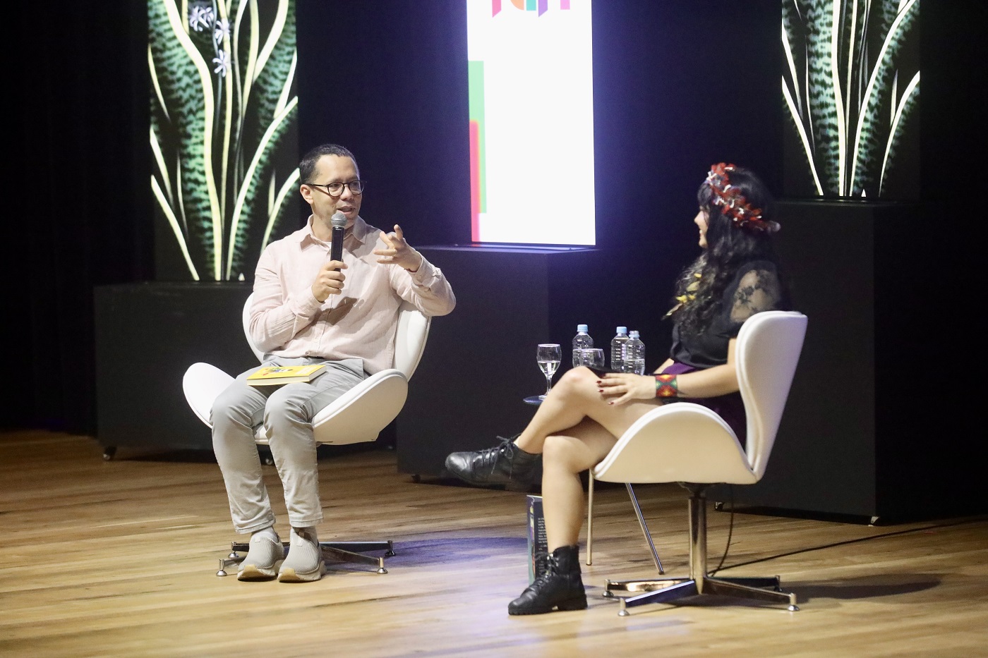 O autor de Torto Arado, Itamar Vieira Junior, provocou reflexões com a pergunta “É mesmo ficção?”. Logo depois, Bárbara Carine destacou a importância da educação antirracista.