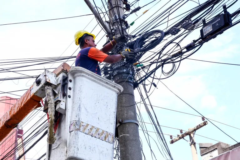 A ação, coordenada pela Secretaria Municipal de Conservação e Serviços Públicos (Seconser), mobiliza equipes em diferentes turnos para reorganizar a fiação de telecomunicações em desuso e corrigir o visual poluído dos postes da cidade.
