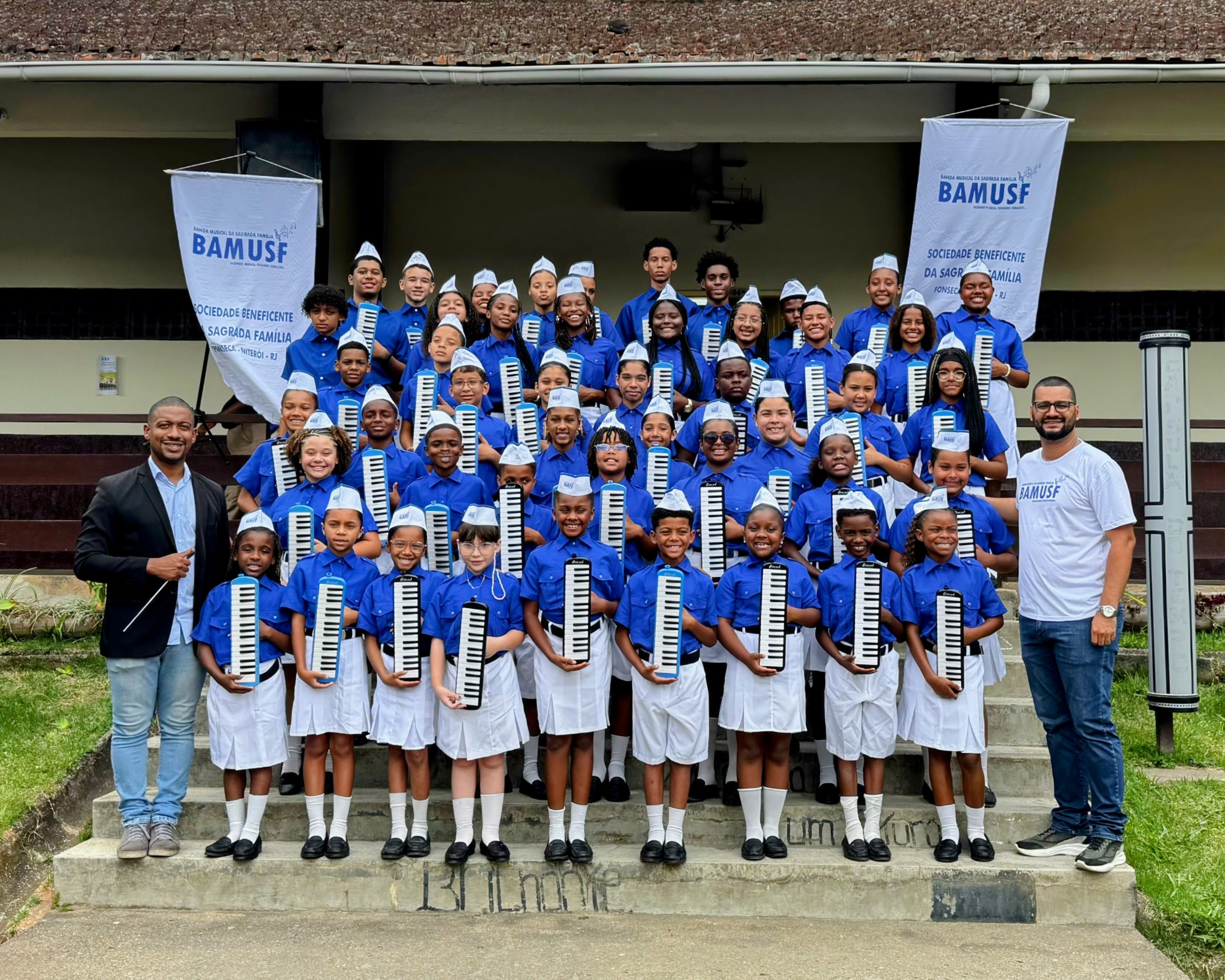 Criado no ano 2000, o projeto BAMUSF atua há 25 anos na Zona Norte de Niterói, oferecendo atividades de musicalização, formação cidadã e desenvolvimento humano para mais de 60 crianças e adolescentes entre 7 e 16 anos.