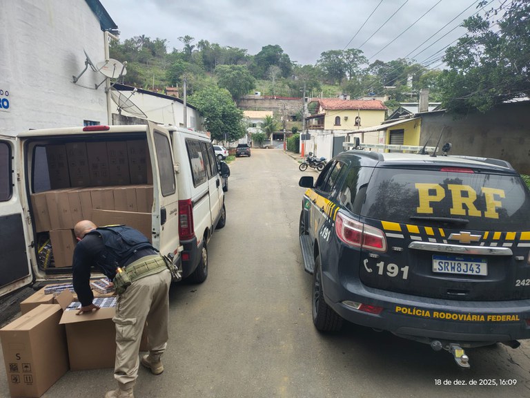 Segundo a PRF, equipes do Grupo de Fiscalização de Trânsito (GFT/5) faziam fiscalização na altura do km 45 quando determinaram a parada de uma van. Durante a verificação, o motorista não soube informar o destino preciso da carga e apresentou notas fiscais divergentes.