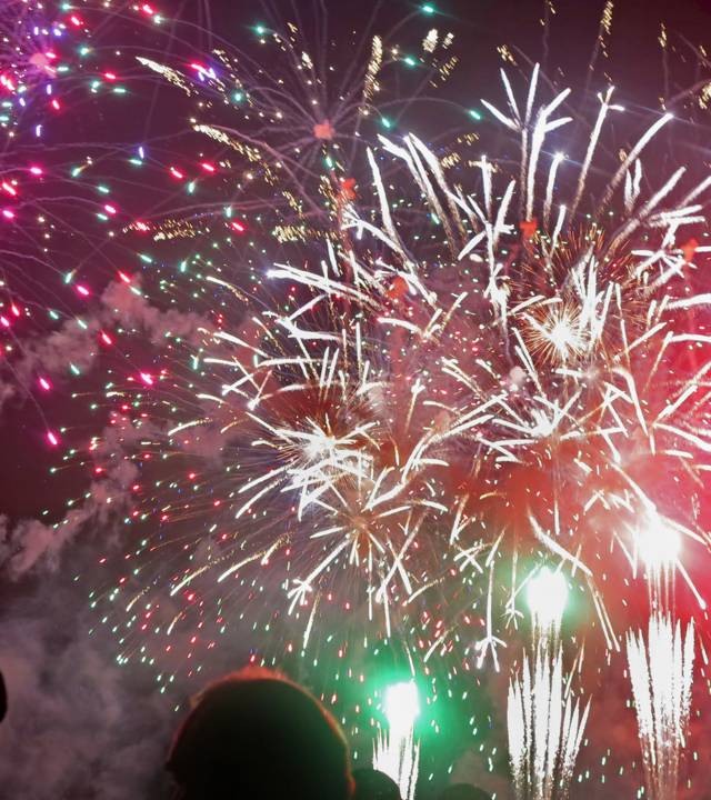 Queima de fogos: À meia-noite (15 minutos de duração)