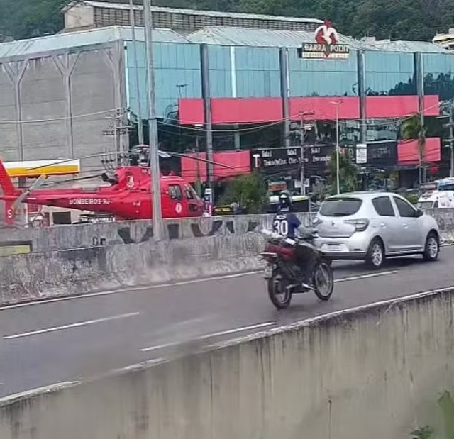 A Avenida Armando Lombardi, na Barra da Tijuca, Rio de Janeiro, precisou ser interditada na tarde desta terça-feira (18) para o pouso de um helicóptero de resgate do Corpo de Bombeiros. A operação emergencial aconteceu no sentido Recreio e paralisou totalmente o trânsito na região. (Vídeo abaixo)