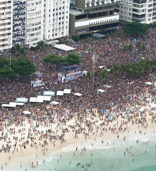A organização informou que as condições climáticas inviabilizaram a realização da programação prevista para esta sexta. O alerta de chuvas intensas levou à interrupção das atividades montadas na orla de Copacabana.