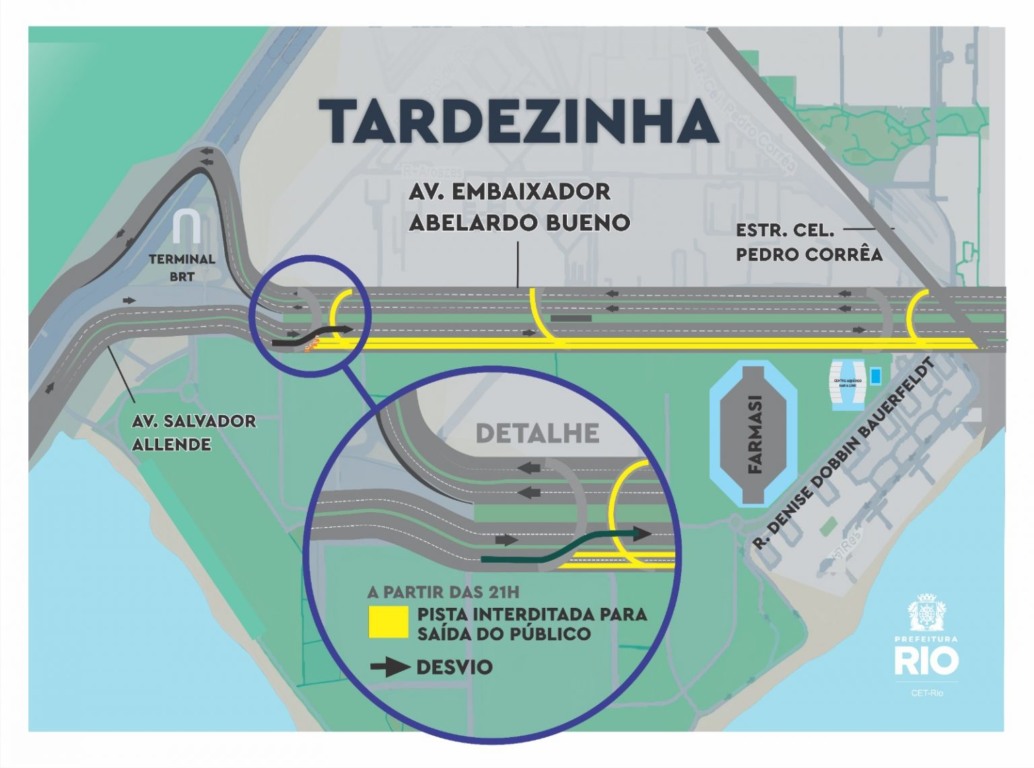 O Rio de Janeiro terá uma operação especial de trânsito neste sábado (13) por causa do evento Tardezinha, que será realizado no Parque Olímpico, na Barra Olímpica. A CET-Rio preparou um esquema para organizar o tráfego e orientar os motoristas que passarem pela região.
