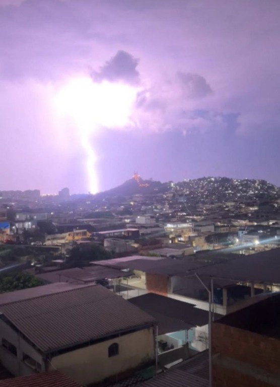 Uma imagem registrou o momento em que um raio passou próximo à Igreja da Penha, no bairro da Penha, Zona Norte do Rio de Janeiro, neste domingo (1). O registro começou a circular nas redes sociais ainda nas primeiras horas do dia.