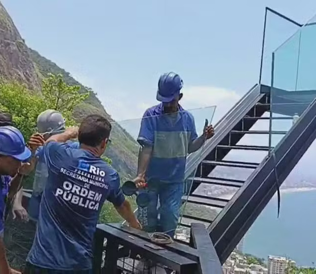 De acordo com os técnicos da pasta municipal, a escada era feita de vidro e ferro — materiais que poderiam ser sensíveis à maresia. Por isso, além da falta de autorização, haveria risco de comprometimento da estrutura.