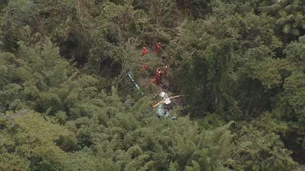 A região onde o helicóptero caiu possui vegetação densa, o que dificulta o deslocamento das equipes e o acesso aos destroços da aeronave.