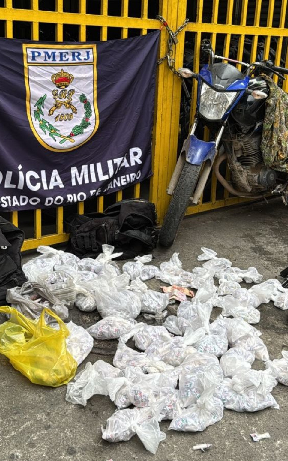 Durante a abordagem, os militares recolheram diversos materiais usados pelo tráfico. Entre os itens apreendidos estavam uma pistola, munições, rádio transmissor, além de roupa camuflada e uma motocicleta.