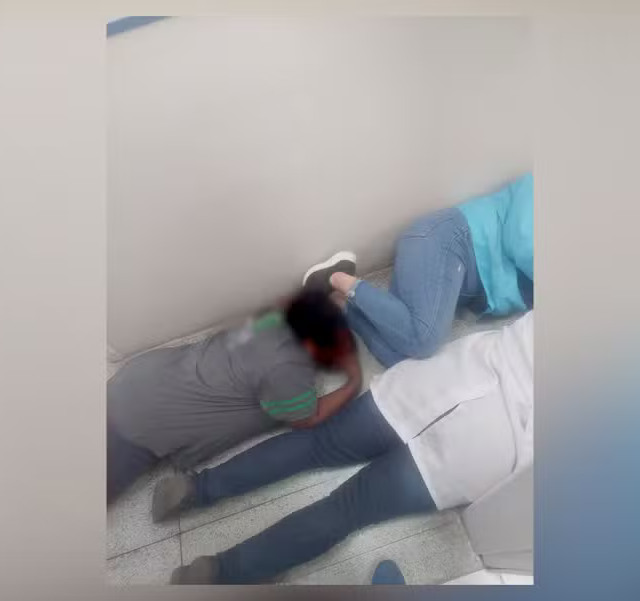 Imagens gravadas por celular dentro da unidade de saúde, que circulam nas redes sociais, mostram o desespero de quem estava no local. Funcionários de jaleco branco e pacientes, incluindo idosos e crianças, são vistos se agachando atrás de balcões e corredores, tentando se proteger dos tiros que ecoavam nas proximidades.