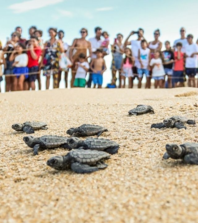 Um dos momentos mais especiais da reserva é a soltura dos filhotes de tartaruga-cabeçuda, que percorrem o caminho até o mar. A temporada de soltura acontece nos meses de janeiro, e no ano passado, mais de 71 mil filhotes seguiram essa jornada incrível, encantando os visitantes.