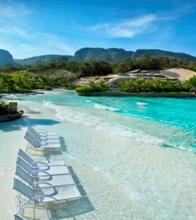 • Parques aquáticos com áreas infantis, toboáguas e piscinas de profundidade reduzida.