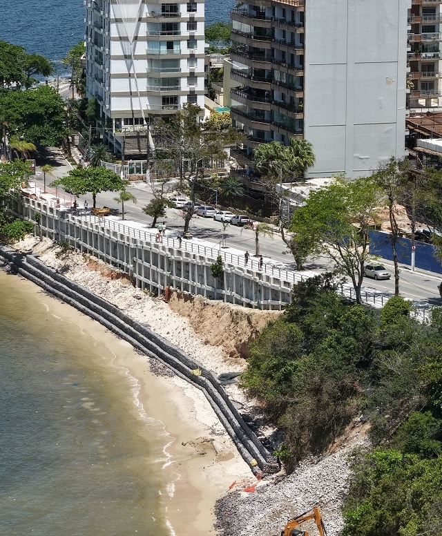 Além das intervenções em bairros e comunidades, a Prefeitura também faz uma obra de contenção em uma das áreas mais simbólicas da cidade: a encosta da Praia da Boa Viagem, nas proximidades do Museu de Arte Contemporânea de Niterói (MAC). A intervenção reforça a estabilidade do terreno e a segurança em um trecho de grande circulação de moradores e turistas, especialmente em dias de orla cheia e eventos na região.