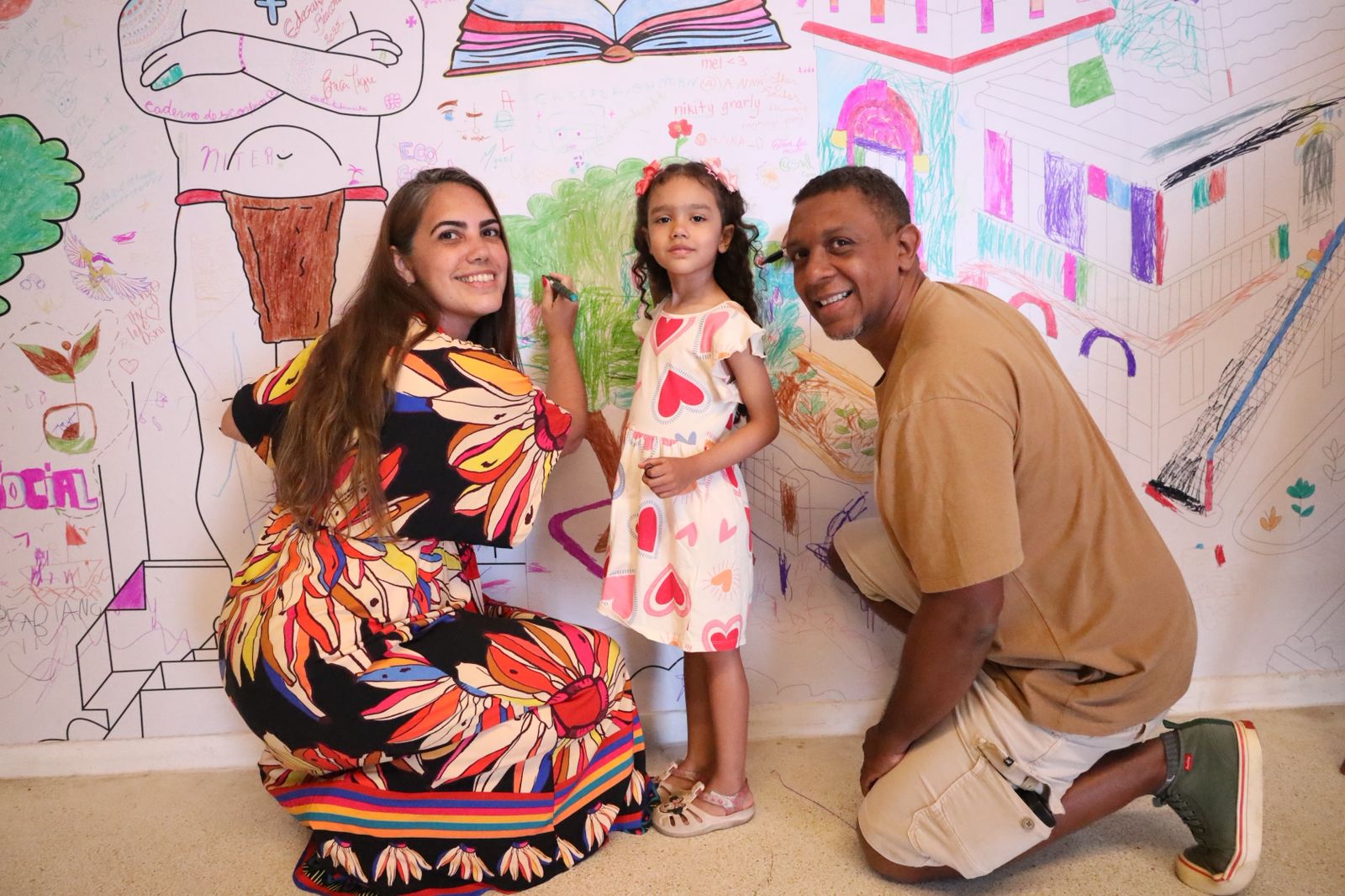 Durante a abertura, o público pôde interagir com painéis artísticos e atividades lúdicas, simbolizando o diálogo entre gerações e linguagens.