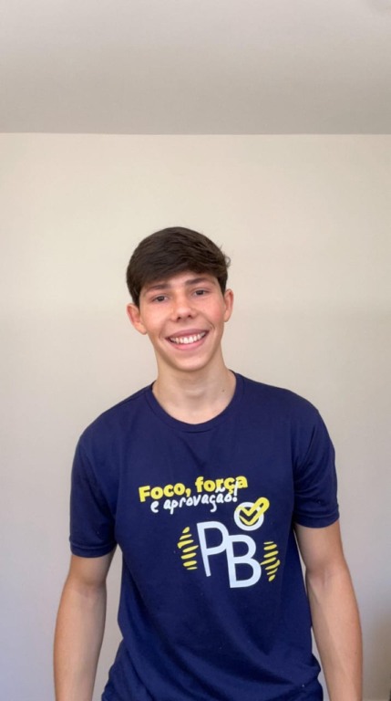 “Aumentei bastante o volume de estudo, sempre com apoio e o direcionamento da equipe do PB, que estava disposta a ajudar a qualquer hora. Isso fez toda a diferença para que eu me sentisse preparado para qualquer vestibular”.