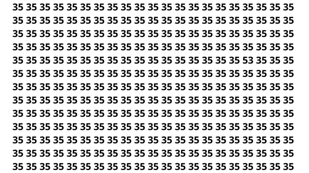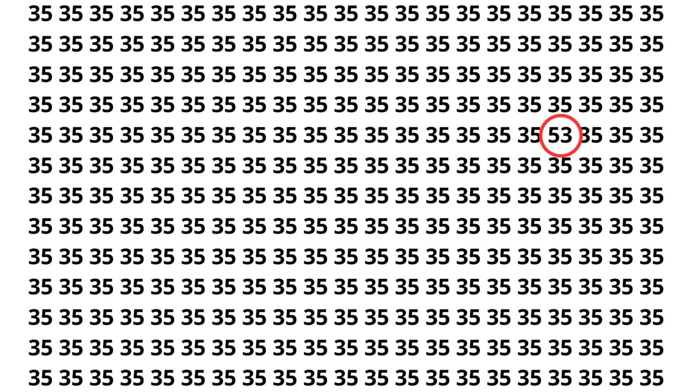 Parabéns por ter tentado! O número escondido entre todos os 35 é 53. A dificuldade do puzzle vinha da semelhança visual e da distração proposital criada pela repetição dos números ao redor.