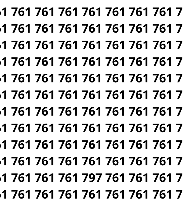O número escondido é o 797. Sua semelhança com os demais números torna a identificação difícil, exigindo observação detalhada e concentração máxima.