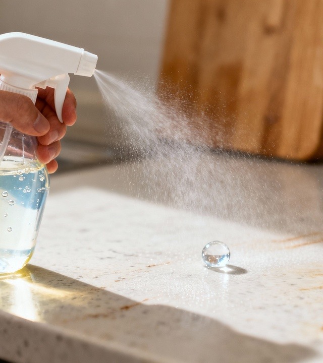 - Desinfetante simples: água, vinagre e algumas gotas de óleo essencial (quando disponível) para áreas como banheiro e cozinha.