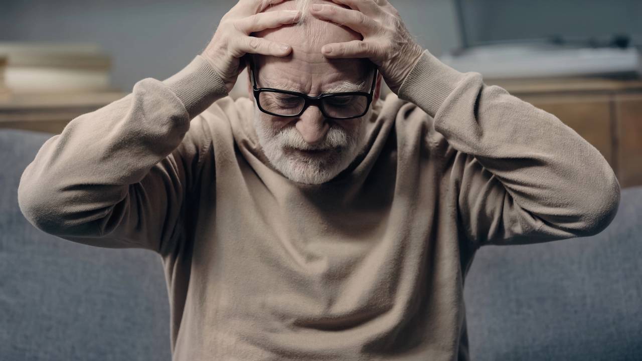 Homem idoso com as mãos na cabeça – Créditos: depositphotos.com / RostyslavOleksin
