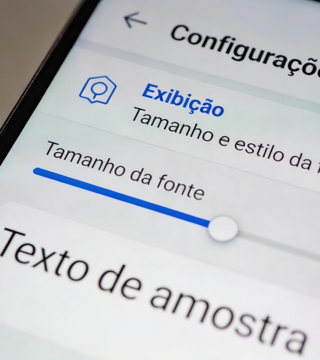 Em seguida, toque em “Tamanho da fonte” ou “Tamanho do texto” e ajuste a barra até que as letras fiquem confortáveis para leitura. Algumas versões do sistema permitem ampliar também ícones e menus.