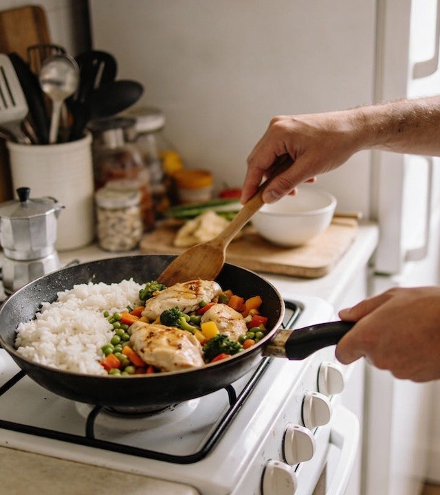Refeições rápidas e completas ajudam quem mora sozinho a economizar tempo e cozinhar em casa – Créditos: depositphotos.com / VadimVasenin