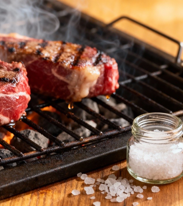 • Sal grosso ou sal refinado: elemento básico, usado em quantidade controlada para não secar a carne.