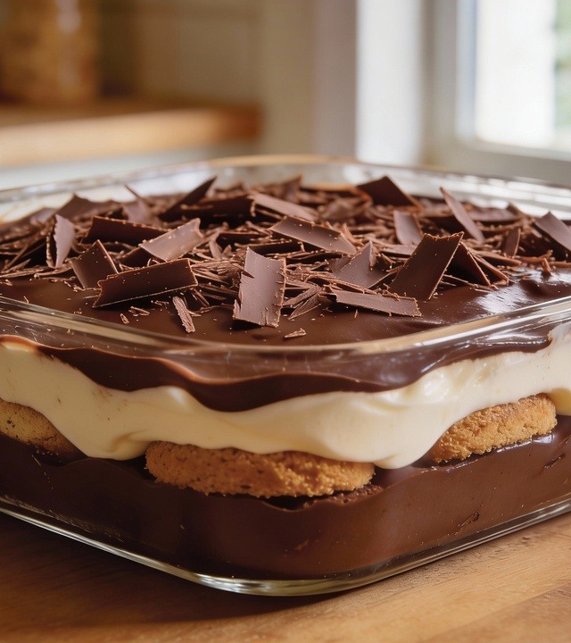 - Finalizar: Cobrir a última camada com o creme e, se desejado, polvilhar raspas de chocolate, granulado ou biscoitos triturados.
