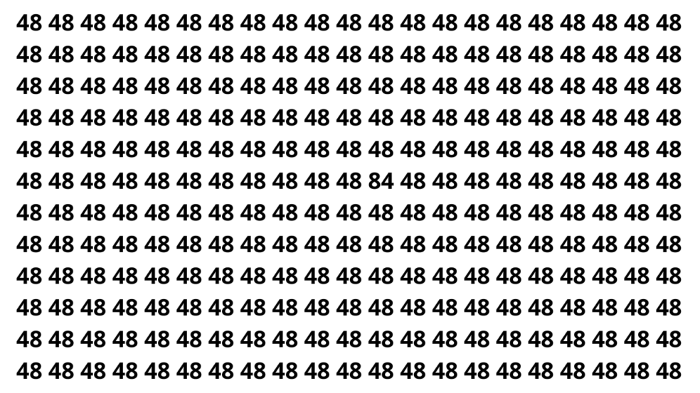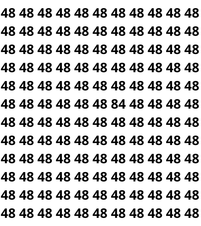 Aqui está a resposta do desafio: o 84 está totalmente integrado à sequência de 48, escondido no centro da imagem, aproveitando o padrão repetitivo para se camuflar e desafiar sua percepção.