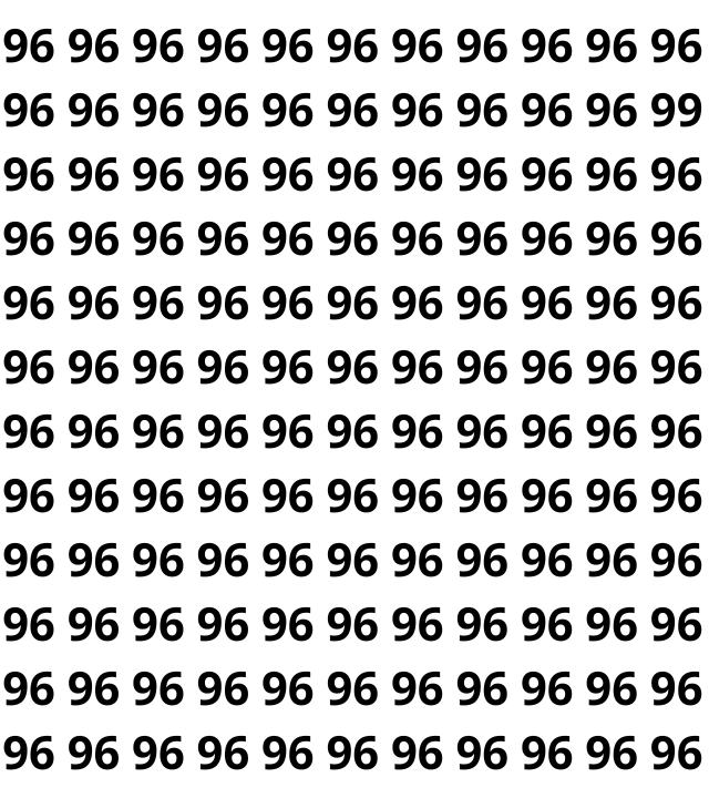 O objetivo é identificar o 99 em meio a vários 96 antes que o tempo acabe. O padrão repetitivo induz uma leitura automática, tornando mais fácil passar despercebido sobre a linha onde o número realmente se encontra.