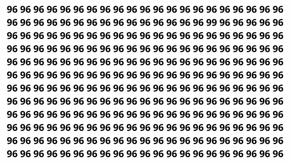 Muitas pessoas concentram a busca no centro ou na primeira linha da sequência, deixando outras partes de lado. O número 99 estava escondido na segunda linha da imagem, misturado aos 96.