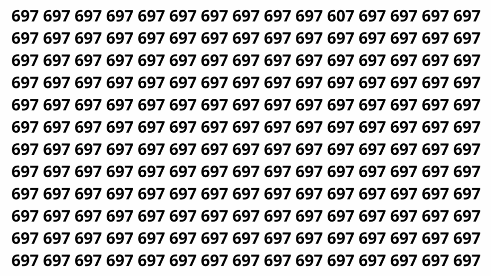 Encontre o número 607 entre os números 697 em menos de 6 segundos