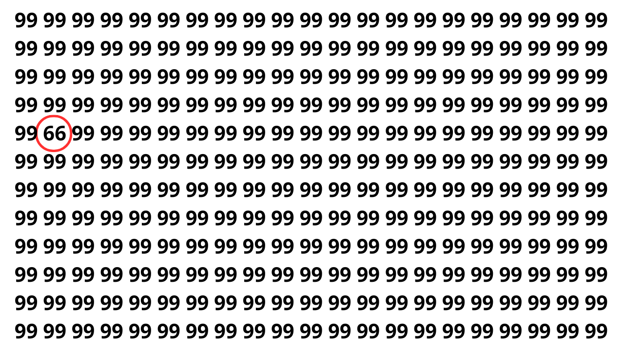 Seu objetivo é localizar o número 66 entre uma série de 99 espalhados pela imagem. A contagem regressiva começa assim que você olha para a sequência. Cada segundo conta!