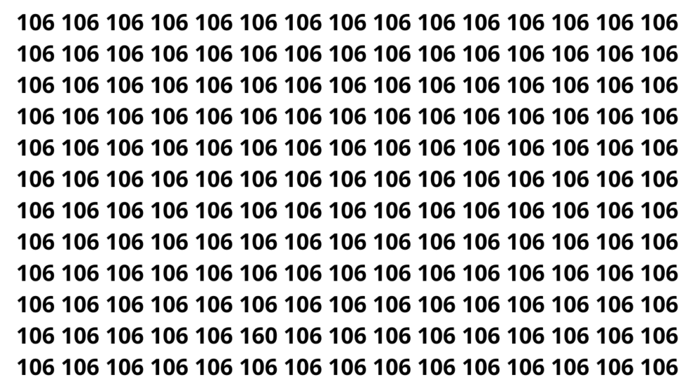 Aqui está a resposta do desafio: o número diferente entre os 106 é 160, localizado na parte mais baixa da imagem. Sua posição exige atenção extra, tornando o desafio mais difícil do que parece à primeira vista.