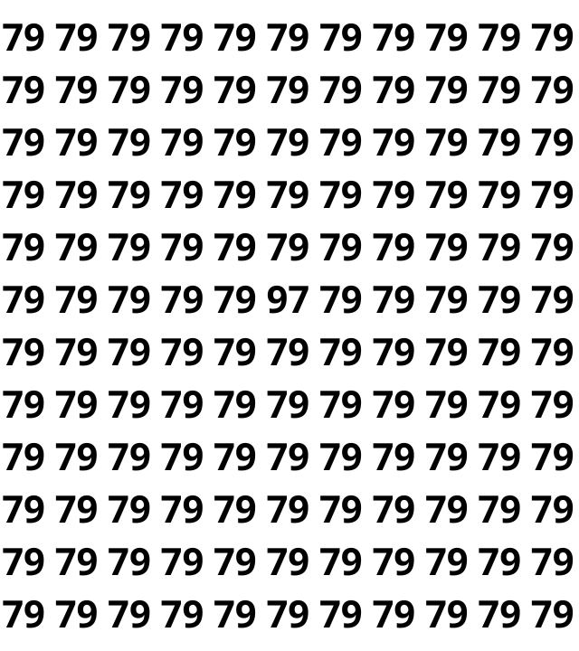 Se você conseguiu resistir à tentação e tentou encontrar o número escondido, agora é hora da revelação. O número que se destacava entre os vários outros era 97, e ele estava estrategicamente posicionado no centro da imagem, passando despercebido devido à similaridade com os 79 ao redor.