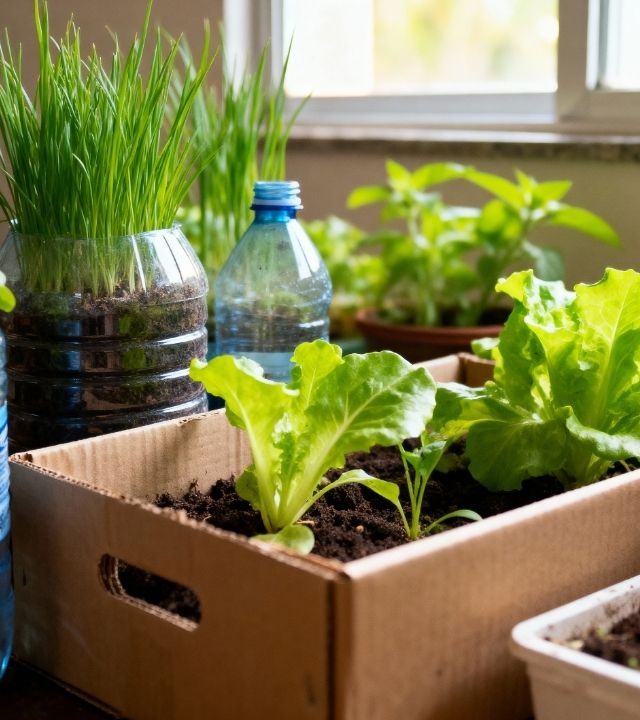 É comum reutilizar embalagens que iriam para o lixo, como garrafas PET, caixas de leite e potes de sorvete, transformando-as em recipientes para mudas e sementes. Cascas de frutas, legumes e borra de café podem virar adubo orgânico simples, reduzindo resíduos e permitindo iniciar o plantio com custo mínimo.