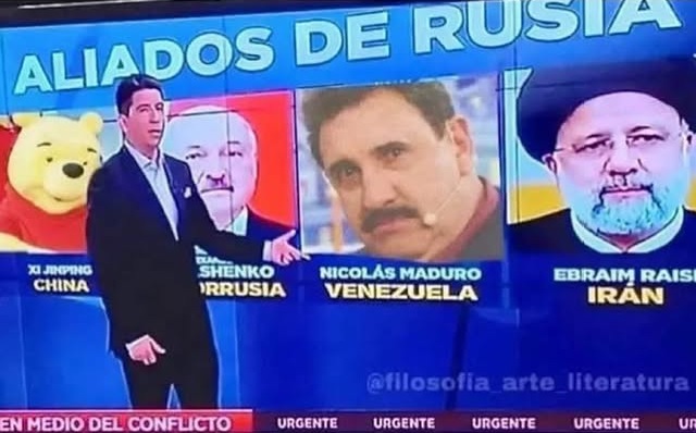 O frame original foi exibido pelo telejornal Meganoticias, do Chile, em 24 de fevereiro de 2024. Na ocasião, a reportagem tratava dos países aliados da Rússia e da Ucrânia, em conflito desde 2022.