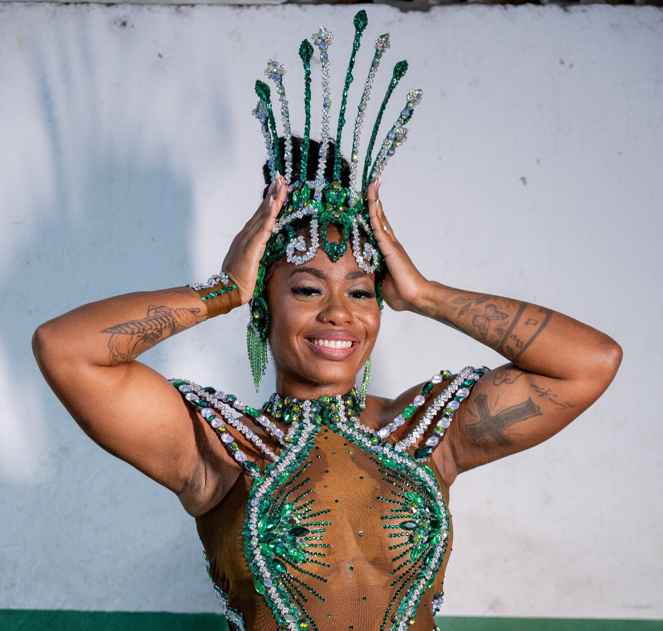 Cria da escola, ela já atuava como musa e agora alcança o cargo mais desejado por muitas meninas de uma comunidade: tornar-se rainha de bateria da própria agremiação.