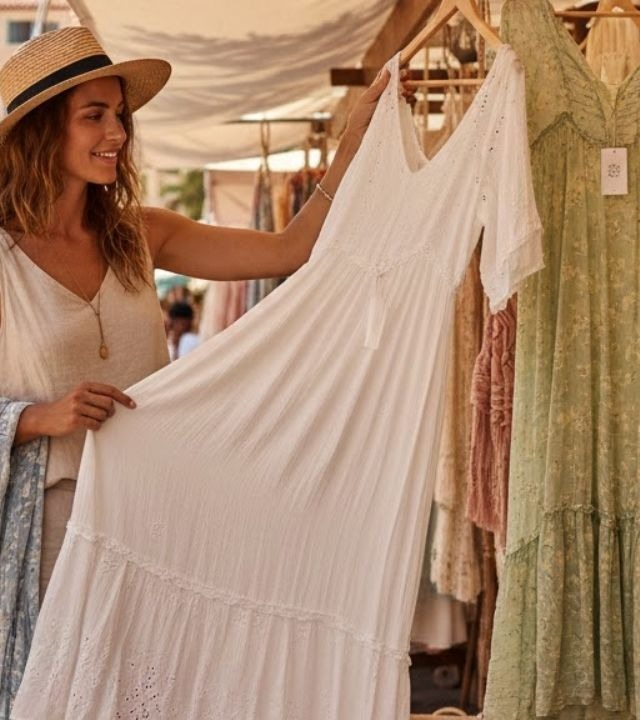 - Acessórios versáteis como chapéus de palha, bolsas de ráfia e óculos de sol.