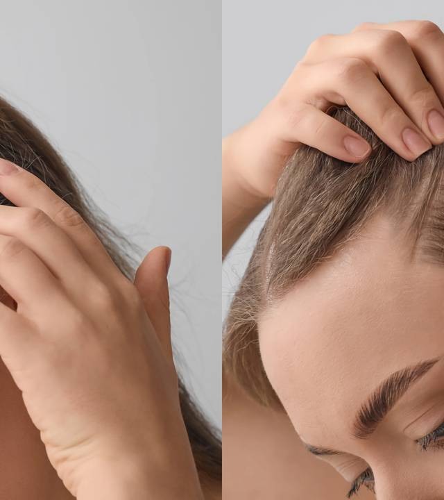 2. Com a ponta dos dedos, aplique pequenas quantidades da solução no couro cabeludo e massageie durante dez minutos.